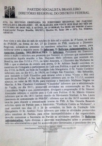 Embora conste na Ata toda discriminação do ocorrido durante a reunião, chama atenção um dos informes: “A Sra. Laura (Assessora de comunicação do PSB/DF) informou que no dia 16/10 ocorrerá uma reunião para discutir a comunicação interna do PSB.”. Tal informe traz a tona uma pergunta: Como poderia, durante uma reunião, anunciar a realização de um evento futuro, que teria ocorrido há exatos dez dias, antes da data da realização do encontro que originou tal Ata?
