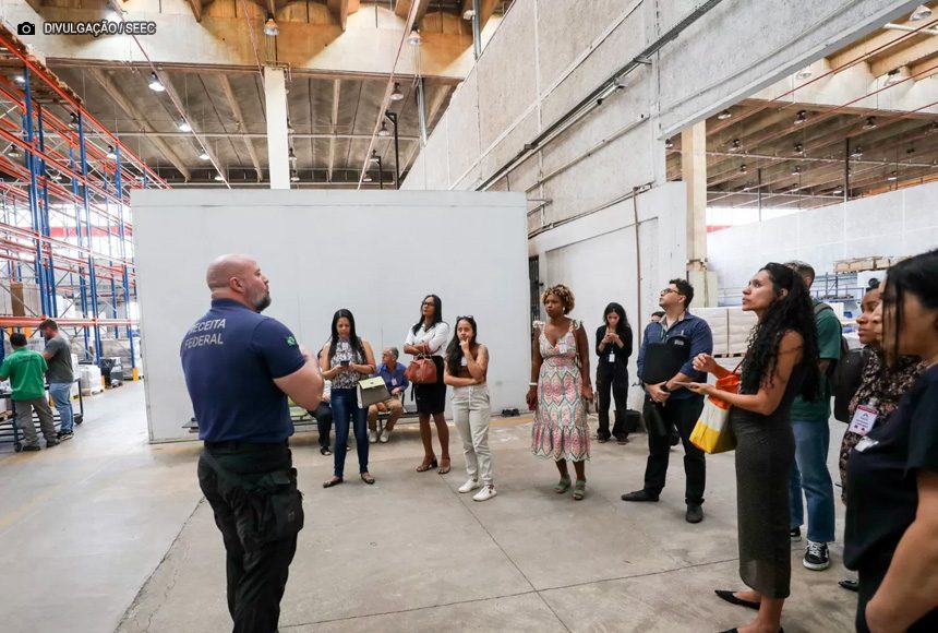 No roteiro da visita pedagógica, que durou cerca de três horas, os professores conheceram o processo alfandegário de produtos estrangeiros que entram no país, entenderam mais sobre inspeções de cargas e tiveram a oportunidade de acompanhar o trabalho realizado por cães farejadores.