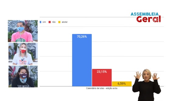 A dirigente sindical destacou que a defesa da vida sempre foi a principal luta do Sinpro-DF e que, por isso, pavimenta o calendário proposto pela direção do Sindicato. “O momento é de preocupação para todos nós. O resultado que tivemos hoje não se trata de vitória ou de derrota, afinal, todos e todas nós temos como prioridade a defesa da vida. O resultado mostra que estamos unidos e atentos, e que não nos submeteremos a condições que negligenciem ainda mais a pandemia”, dialogou Rosilene Corrêa.