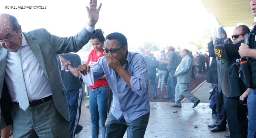 11:34 – Os professores radicalizaram e partem em direção ao Palácio do Buriti. Durante a confusão, um dos vidros da sede do Executivo foi quebrado. A polícia se mobiliza para conter o avanço dos manifestantes.