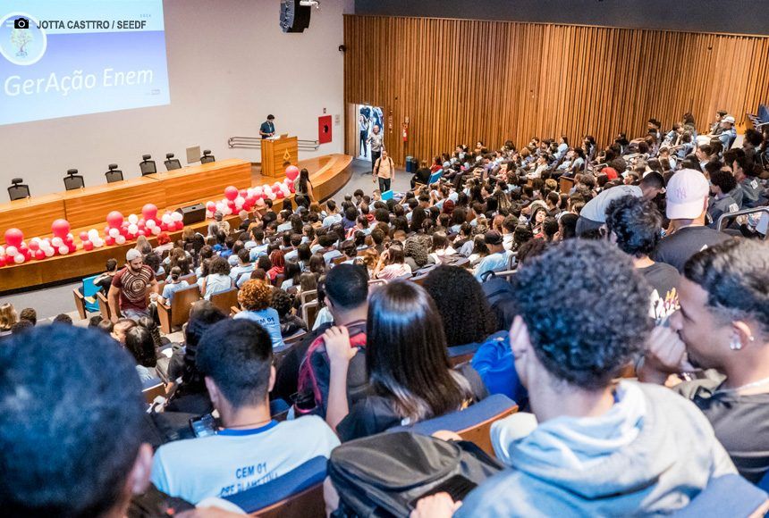 Para auxiliar na reta final de preparações para o Exame Nacional do Ensino Médio (Enem), a Secretaria de Educação do Distrito Federal (SEEDF) promoveu nesta quinta-feira (17) a primeira edição do evento GerAção Enem. A iniciativa da Diretoria de Ensino Médio (Diem) visa dar suporte qualificado aos alunos na preparação para as provas do Enem. A série de palestras realizadas no auditório da Câmara Legislativa do DF (CLDF) orientou quanto ao formato da avaliação, resolução de questões e redação.