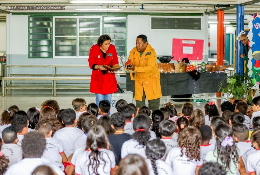 Os profissionais da Unidade Básica de Saúde (UBS) 1 da Candangolândia encarnaram por um dia os personagens da franquia brasileira Detetives do Prédio Azul para transmitir aos alunos da Escola Classe 2 (EC 2) da Candangolândia os conhecimentos sobre a dengue, doença que cresceu na região administrativa. Em 2021, a cidade registrou 36 casos suspeitos e, neste ano, o número subiu para 253, segundo o Boletim Epidemiológico da Secretaria de Saúde.