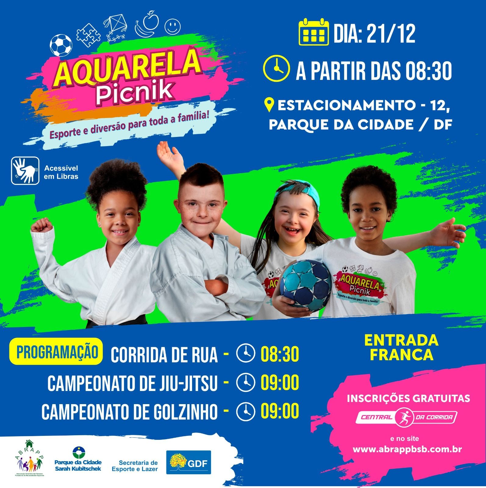 Realizado pela Associação Brasileira da Pessoa com Deficiência (ABRAPP), em parceria com o Parque da Cidade e a Secretaria de Esporte e Lazer do GDF, o Projeto Aquarela tem como principal objetivo promover o esporte como ferramenta de inclusão, além de fortalecer os laços comunitários.