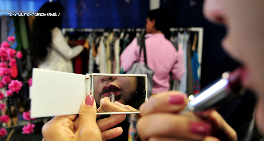 Além do vestuário, são oferecidos outros itens como bolsas, bijuterias e perfume, além de maquiagem.