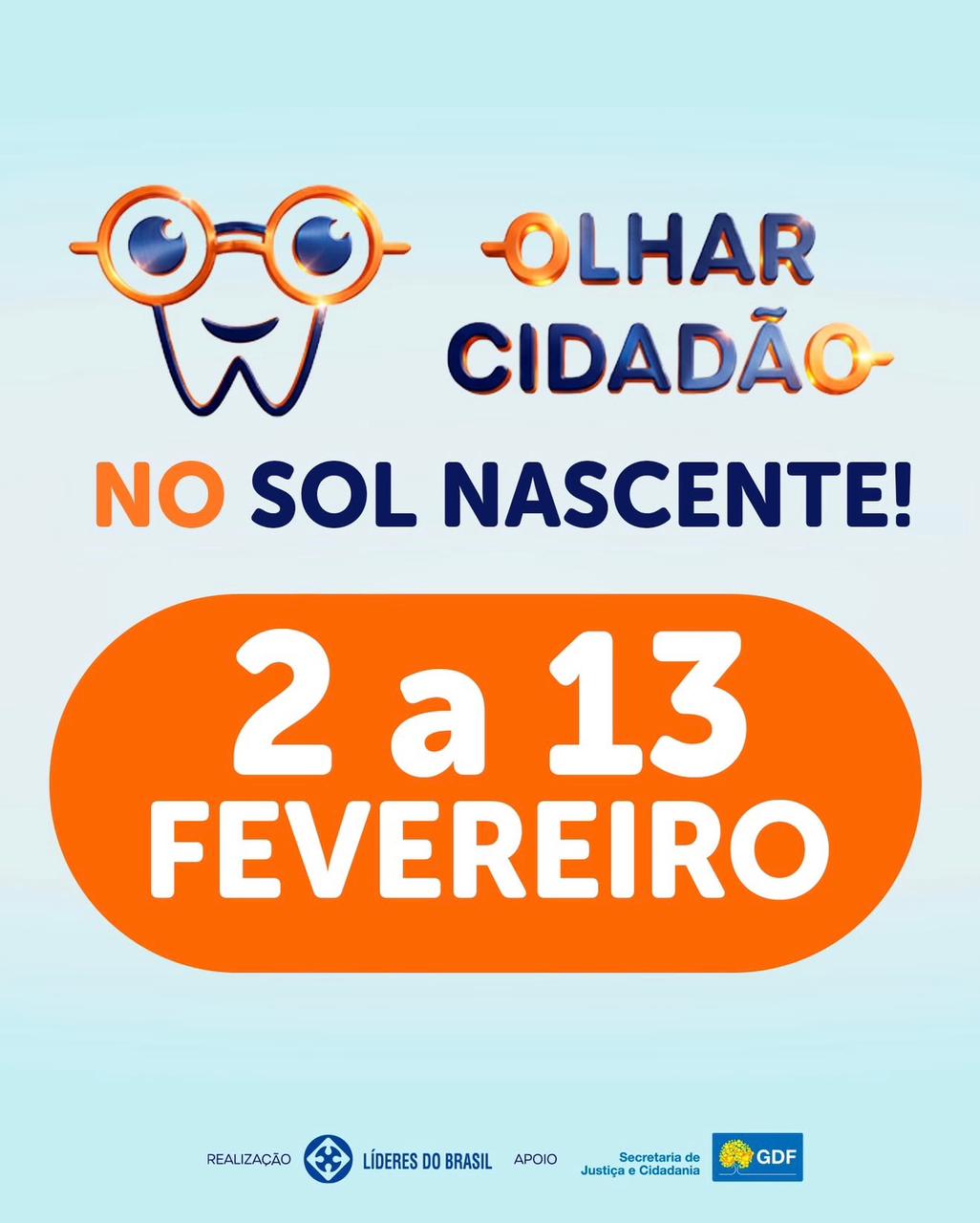 O Projeto Olhar Cidadão, uma iniciativa da OSC Líderes do Brasil com apoio da Secretaria de Justiça e Cidadania do Distrito Federal (Sejus-DF), chega ao Sol Nascente entre 02 e 13 de fevereiro para oferecer atendimentos oftalmológicos e odontológicos gratuitos a crianças e adolescentes de 6 a 17 anos, estudantes da rede pública. A ação busca promover prevenção, diagnóstico precoce e cuidado humanizado em saúde infantil, visando melhorar o desenvolvimento, aprendizado e qualidade de vida dos jovens em uma das regiões mais populosas e socialmente vulneráveis do Distrito Federal.