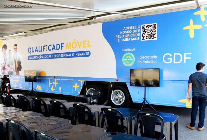 “O QualificaDF Móvel conta com quatro carretas, com capacidade para 220 alunos cada. São cursos presenciais em localidades onde não temos estrutura física”, explica o secretário de Desenvolvimento Econômico, Trabalho e Renda, Thales Mendes. De acordo com o titular da pasta, as etapas são iniciadas a cada 30 dias. Lançado no final do ano passado, o programa qualificou 548 pessoas em 2022.