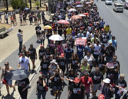 Além dos servidores da Saúde – médicos, auxiliares e técnicos de enfermagem e administrativos –, da administração direta, dos agentes penitenciários e funcionários do Departamento de Estradas de Rodagem (DER), os profissionais da Educação também decretaram cruzaram os braços por tempo indeterminado. Em ato público realizado na Praça do Relógio, em Taguatinga (14/Out), cerca de três mil profissionais de educação do DF deram início à greve contra a perda de direitos e salário.