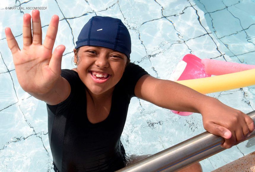 A estudante do 4º ano do ensino fundamental Sophia Lauane Silva, de 10 anos, não esconde a paixão pela natação e gosta de ser fotografada na piscina. “Ela emagreceu em pouco tempo e se encontrou aqui. Ela ama os dias da natação e já está socializando muito mais com as pessoas. Noto muita diferença em pouco mais de um mês de aula”, frisa Francisca Silva, mãe de Sophia, que tem síndrome de Down.