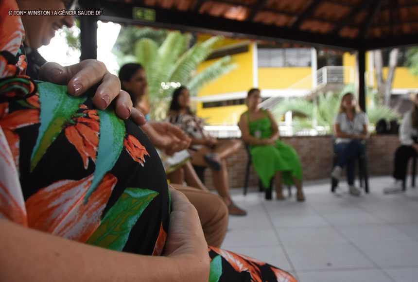 Déllis, que já está no fim da gestação, recebe, desde o início, assistência multidisciplinar com médicos, enfermeiros, assistentes sociais, farmacêuticos, fonoaudiólogos, fisioterapeutas e nutricionistas. Em complemento, ela ainda participa de encontros e atividades promovidas pela unidade.