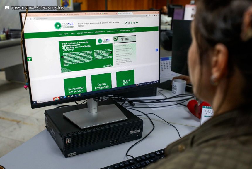 Página da Escola de Aperfeiçoamento do Sistema Único de Saúde oferece informações sobre cursos presenciais e online, além de vagas para estágio e treinamento em serviço