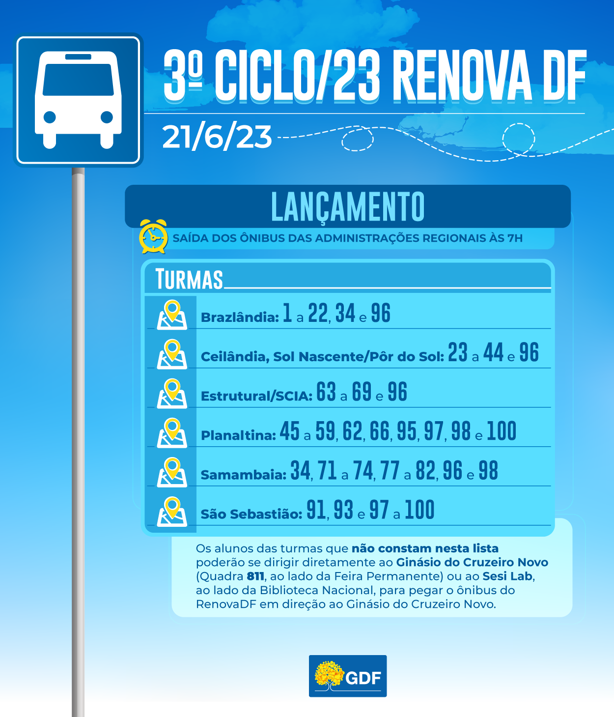 Confira a saída dos ônibus para o lançamento no dia 21 de junho:
