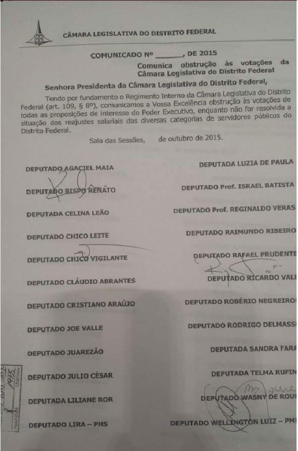 20151013185333Na Câmara Legislativa do DF (CLDF), os distritais cruzam os braços e prometem obstruir a votação de projetos enquanto Rollemberg não descascar o pepino de tentar jogar, para cima do Legislativo, a não definição do reajuste dos servidores do GDF.
