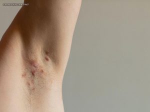 A hidradenite supurativa é uma doença inflamatória de pele, dolorosa e crônica, caracterizada por nódulos e caroços que aparecem com frequência em regiões de grandes dobras no corpo, como as axilas, sob as mamas, nádegas e entre as regiões genitais. Eventualmente, pode surgir também no couro cabeludo, nuca e face. Esses caroços, que podem ser do tamanho de uma ervilha até o de uma bola de gude, tendem a soltar pus. Apesar de a doença estar ligada à predisposição genética, a obesidade e o tabagismo podem ser gatilhos para agravar o quadro inflamatório.
