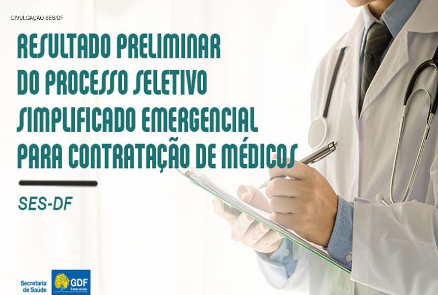 A Secretaria de Saúde divulgou, nesta quinta-feira (7), no Diário Oficial do DF, o resultado preliminar do Processo Seletivo Simplificado Emergencial para contratação de médicos. Os profissionais são da especialidade Clínica Médica e os aprovados irão atuar no Samu, Hospital de Campanha de Ceilândia e nos hospitais regionais da Asa Norte, Brazlândia e Planaltina. O resultado final com a lista de quem foi aprovado será divulgado no dia 15 de janeiro, juntamente com a convocação para apresentação de documentos e contratação.