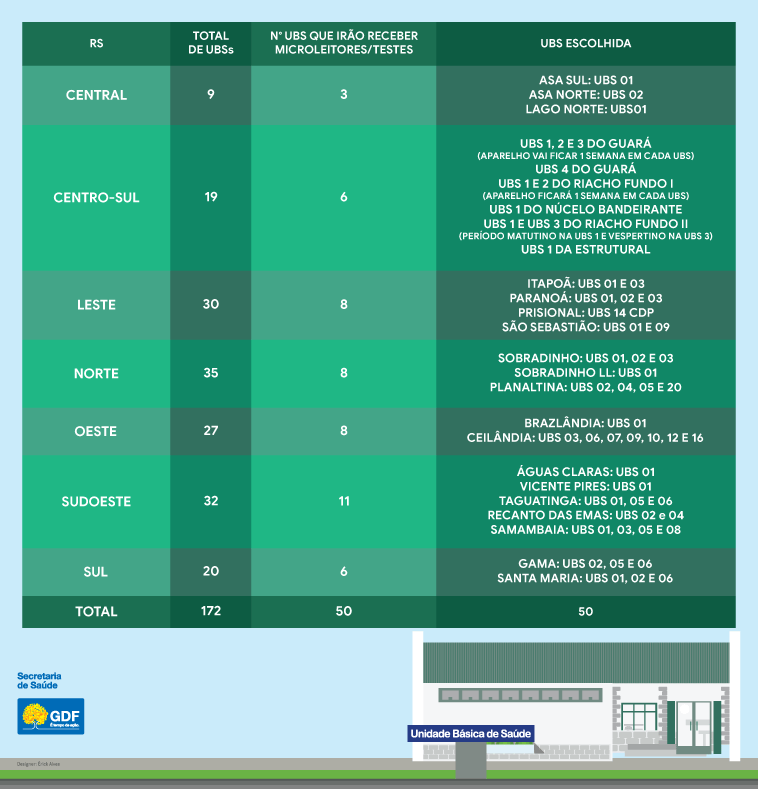 Recentemente, a SES também distribui 145.500 testes rápidos com micro leitores, que permitem um resultado mais preciso, evitando-se, assim, a ocorrência de falso positivo. Esses testes rápidos, fornecidos pelo Ministério da Saúde, atendem a todas as regiões de saúde do DF, por meio de 50 unidades básicas de saúde da rede pública (veja quais são essas UBSs no quadro ilustrativo).