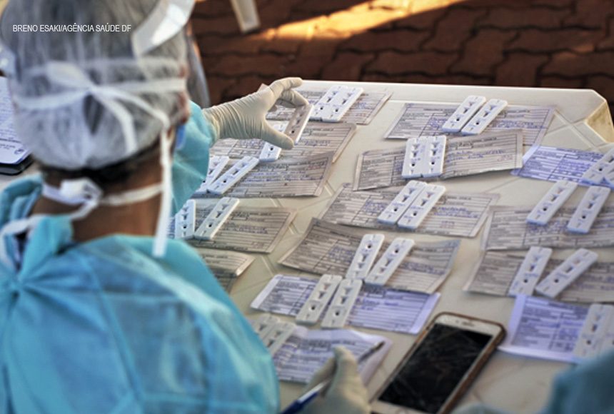 A Secretaria de Saúde iniciou a testagem na população do DF para identificar o novo coronavírus (Sars-CoV-2) em 21 de abril. A partir de 20 de maio, ampliou a aplicação de testes com a modalidade itinerante nas regiões mais remotas e não alcançadas pelo modelo inicial. Ao todo, 213.242 testes rápidos foram feitos e detectou o vírus em 10.189 brasilienses.