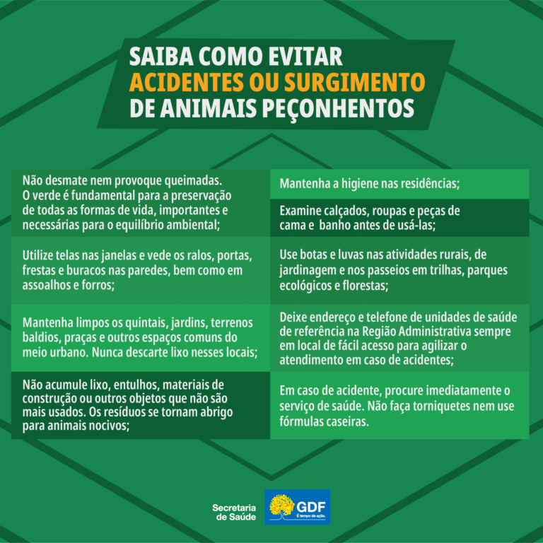 De acordo com Israel Martins, biólogo da Diretoria de Vigilância Ambiental (Dival), para evitar esse tipo de acidentes é importante: vedar soleiras de portas com rolos de areia ou rodos de borracha; reparar rodapés soltos e colocar telas nas janelas; telar as aberturas dos ralos, pias ou tanques; telar aberturas de ventilação de porões e manter assoalhos tapados; manter todos os pontos de energia e telefone devidamente vedados e; manter limpos quintais e jardins.
