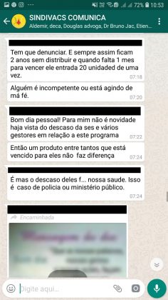 “O parecer do sindicato é para não receber o produto. Por mais que seja dentro do prazo de validade, não tem tempo hábil para poder consumir esse produto. Já está praticamente dentro do mês de vencimento, pois é no mês de janeiro de 2019.” disse ao observar que “O sindicato estuda medidas cabíveis para fazer a denúncia junto aos órgãos competentes.”, concluiu Pereira.