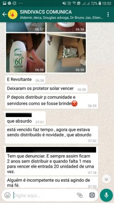 “É revoltante. Deixaram os protetor solar vencer P depois distribuir p comunidade e servidores como se fosse brinde. (SIC)”, disse um servidor.