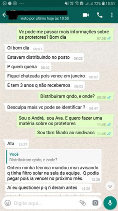 Outro servidor lembrou o descaso por parte da SES-DF em relação a entrega dos protetores solares. “Estavam distribuindo no posto P quem queria. Fiquei chateada pois vence em janeiro. E tem 3 anos q não recebemos.”, apontou outro servidor.