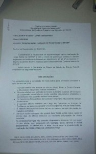 Ainda estão sujeitos às regras a realização de horas-extras no mesmo período da escala de trabalho contratual. A circular prevê também que unidades/serviços que venham a ultrapassar o limite de 1/3 do efetivo com servidores em licenças, férias, abonos e outros afastamentos, ficarão impedidas de conceder horas extras.