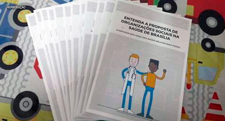 O impresso foi produzido com recursos da área de publicidade do Governo de Brasília, dentro da estratégia de comunicação dos programas e ações do Governo. Pretende contribuir para um debate que, muitas vezes se dá em tom emocional e distorcido. Visa, por exemplo, tranquilizar e esclarecer aos servidores, no sentido de mostrar que as parcerias, quando vierem a ocorrer, não colocarão em risco garantias e direitos dos servidores. E que, da mesma forma, como se trata de uma proposta de complementaridade de serviços em algumas áreas, não eliminará a necessidade de nomeações e novos concursos para a grande maioria da rede de saúde pública.