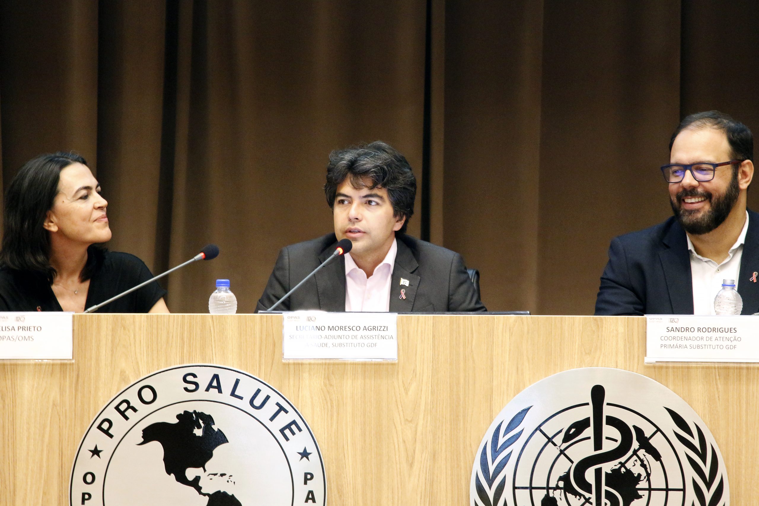 Além de Agrizzi, compuseram a mesa do seminário Gabriela Cardoso da Coordenação da Atenção Secundária e Integração de Serviços do governo do DF; Elisa Prieto, coordenadora da Unidade Técnica de Determinantes da Saúde, Doenças Crônicas Não Transmissíveis e Saúde Mental da Opas/OMS; e Antonio Ribas, consultor da Opas.