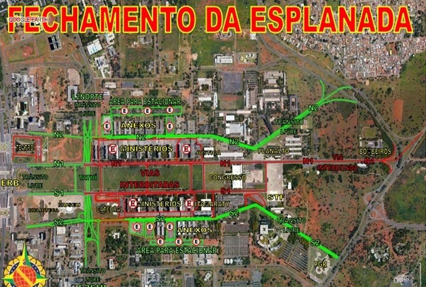 A interdição se estende da L4 até a L2. Os motoristas que trafegam pela S1, via que dá acesso à Praça dos Três Poderes, serão desviados para a L2 Sul, na altura da Catedral de Brasília. Quem passar pela L4 Norte deverá seguir pela via no sentido Asa Sul. Na altura do Quartel do Corpo de Bombeiros, o trânsito ficará interditado.