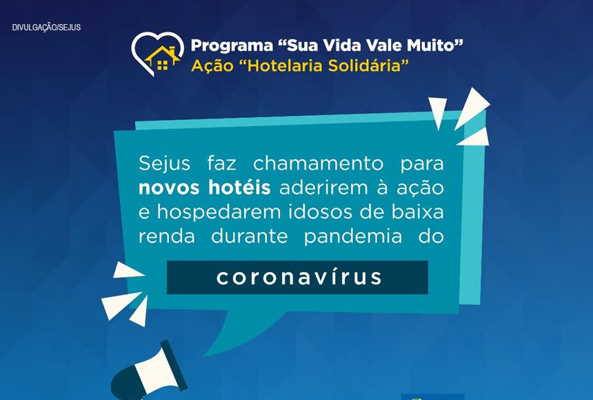 A ação Hotelaria Solidária faz parte do programa “Sua Vida Vale Muito”, desenvolvido pela Sejus para proteger a população idosa da Covid-19.