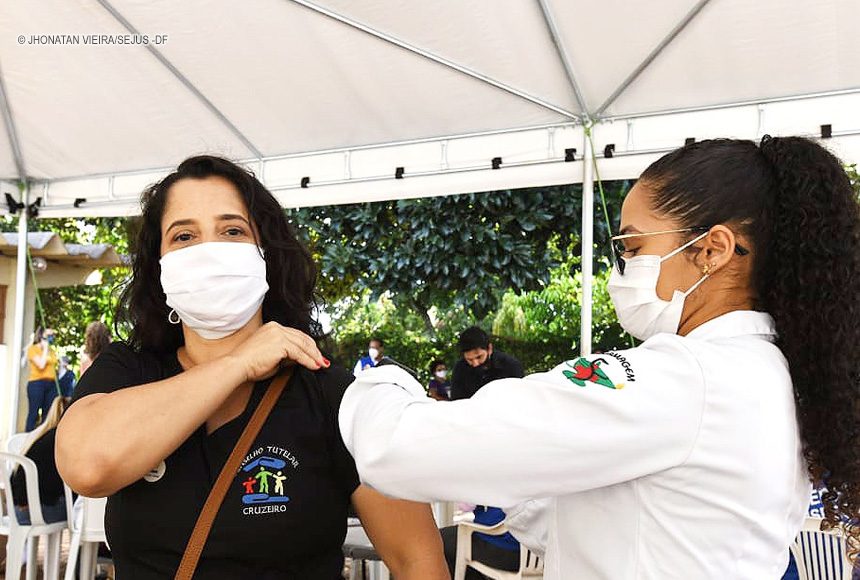 A Secretaria de Justiça e Cidadania (Sejus), conseguiu autorização da Secretaria de Saúde para imunizar  152 conselheiros tutelares do DF. A primeira dose da vacinação contra o coronavírus foi aplicada nesta segunda-feira (26), às 14h30, na Unidade Básica de Saúde (UBS-02), do Cruzeiro Velho. Até então, os conselheiros seriam vacinados em grupo de cinquenta profissionais. Com a mudança, toda a equipe de 202 pessoas recebeu a primeira dose, já que 50 profissionais haviam sido vacinados anteriormente, no Hospital do Guará. Os conselheiros tutelares estão incluídos no grupo prioritário por exercerem trabalho essencial à população.