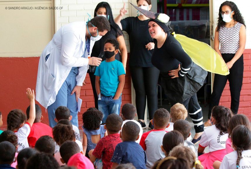 Os olhinhos atentos e os gritos de empolgação dos alunos da Escola Classe 29 de Ceilândia, ao conhecerem os personagens Coronavírus e Vacina deixam claro: é possível, sim, contar com os pequenos quando o assunto é prevenção à covid-19. Esse é o tema da Semana Saúde na Escola, que ocorre até sexta-feira (8).