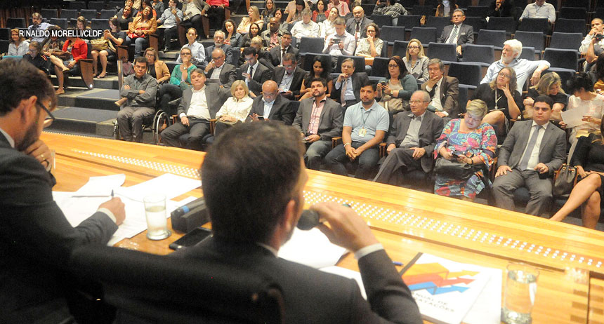 O seminário reuniu, no auditório da CLDF, ex-secretários de Saúde de governos anteriores, como Jofran Frejat e Maninha, além de representantes de categorias profissionais da saúde e do Ministério Público, usuários do sistema, estudantes, entre outros. Também participaram dos debates, na manhã desta sexta-feira, os deputados Wellington Luiz (PMDB), Wasny de Roure (PT), Chico Vigilante (PT) e Chico Leite (Rede).