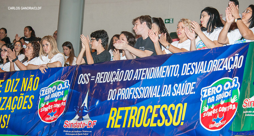 “Estão sucateando a saúde para justificar a contratação das organizações sociais. Não tenho notícia de nenhum estado da Federação que tenha contratado OSs e que tenha dado certo”, reclamou o deputado Chico Vigilante (PT). E completou: “A OS é um monstro pior do que a terceirização. A gente nem sabe quem é o dono”.