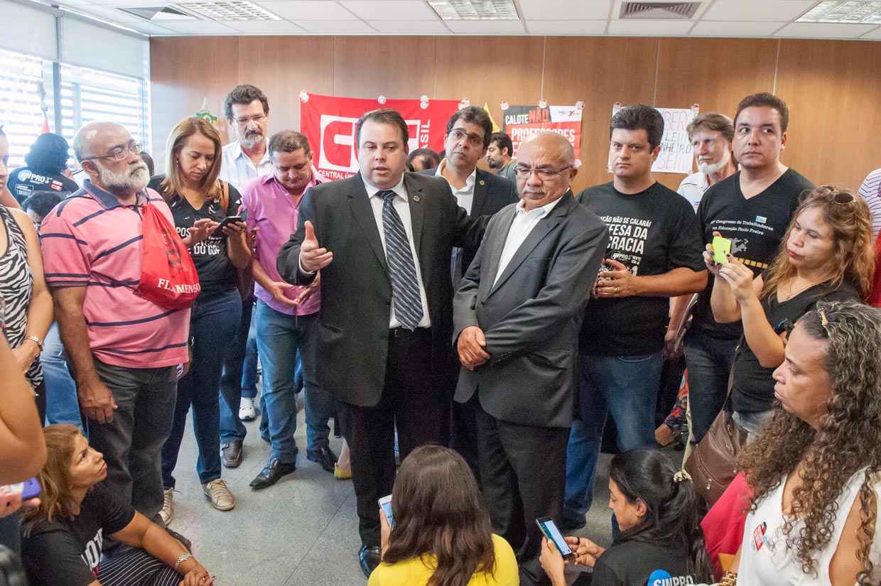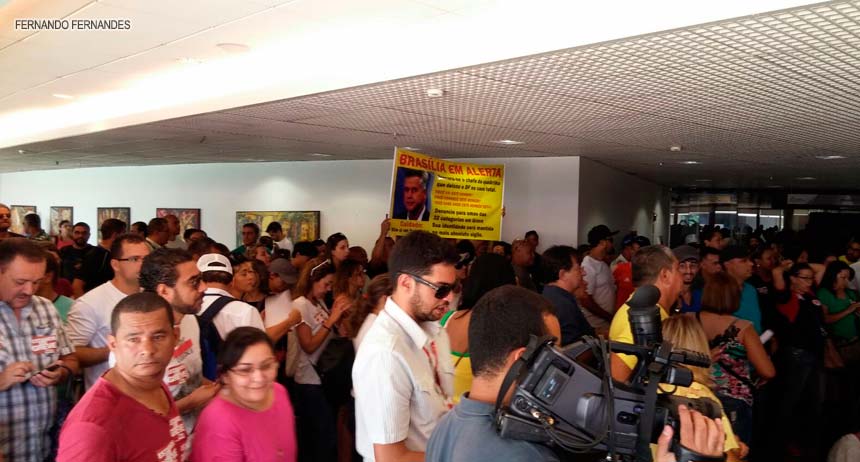 Na manhã de terça-feira (20/Out), cerca de 300 servidores da Saúde e da Educação ocuparam a Câmara Legislativa do DF (CLDF) para reiterar o pedido de apoio dos deputados distritais, em relação à negociação dos sindicatos em greve. Os sindicalistas querem a ajuda dos parlamentares para cobrar do Executivo, o pagamento, ou, o agendamento de cronograma de pagamento dos reajustes concedidos por Agnelo entre 2013 e 2014, dentro de um prazo considerado, coerente.