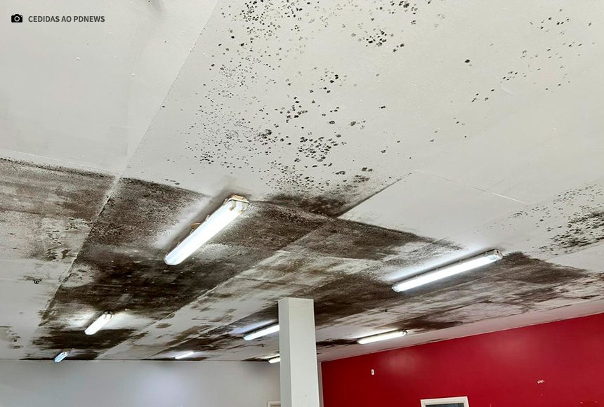 Em imagens cedidas ao PDNews, é possível ver o teto do refeitório com extensões enormes com manchas proveniente de mofo e sinais de umidade. Condições essas que expõem os servidores a crises alérgicas graves. Em especial à profissionais de saúde que possam estar grávidas, além dos idosos.