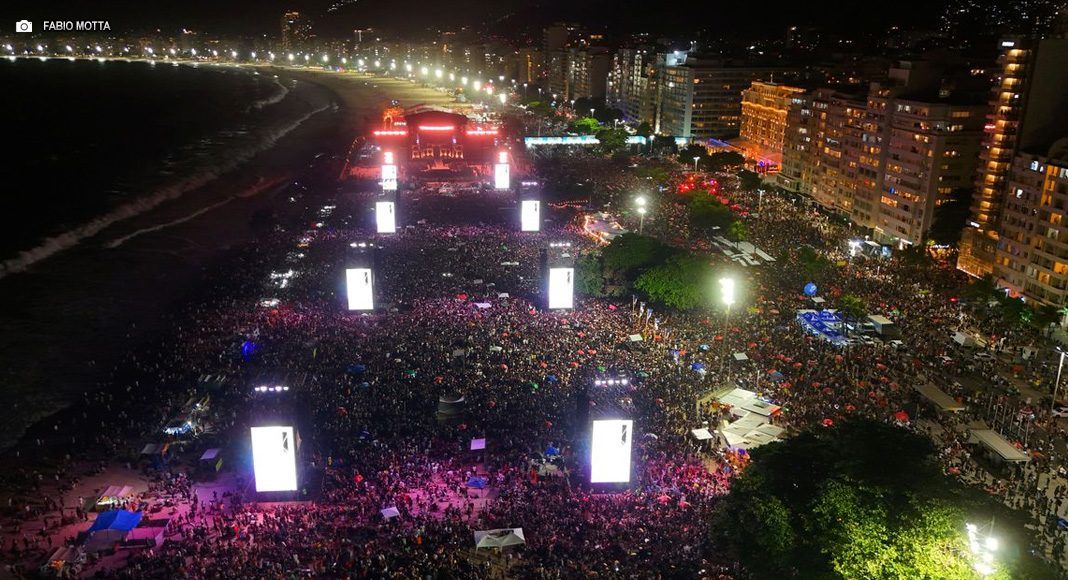 A estimativa de público é da prefeitura do Rio, com informações da Riotur (empresa municipal de promoção ao turismo), da Polícia Militar e dos produtores do show. A multidão supera 1,6 milhão de pessoas que acompanharam, em maio de 2024, outra popstar americana, Madonna, também em Copacabana.
