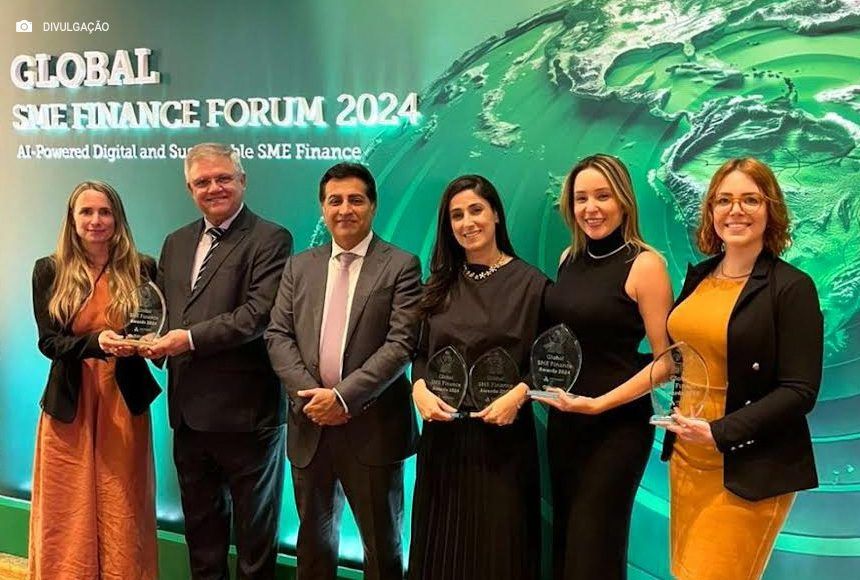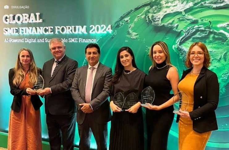O SME Finance Awards 2024 ocorreu no dia 17/9, em São Paulo – SP, e reconheceu instituições de diversos lugares do mundo. A cerimônia fez parte do Global SME Finance Forum, um dos mais importantes eventos com foco em produtos e serviços financeiros para PMEs, reunindo mais de 700 líderes globais e formadores de opinião de quase 80 países, e ocorreu pela primeira vez no Brasil. Para debater tendências que estão moldando o futuro, neste ano, o tema foi o papel da Inteligência Artificial na aceleração das transformações digitais e sustentáveis na área das finanças.