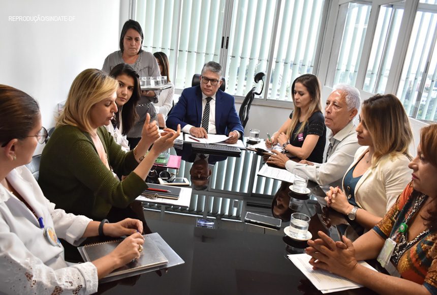 A direção do Sindicato dos Auxiliares e Técnicos em Enfermagem do Distrito Federal (Sindate-DF), entregou, na tarde desta segunda-feira (21/05), ao diretor-presidente do Instituto de Gestão Estratégica de Saúde do DF (Iges-DF), Francisco Araújo, a proposta de acordo coletivo. Além de Araújo, também participaram da reunião a superintendente de Gestão de Pessoas, Valda César, a gerente de enfermagem, Ana Aline Freitas e sua assessora, Daniele.