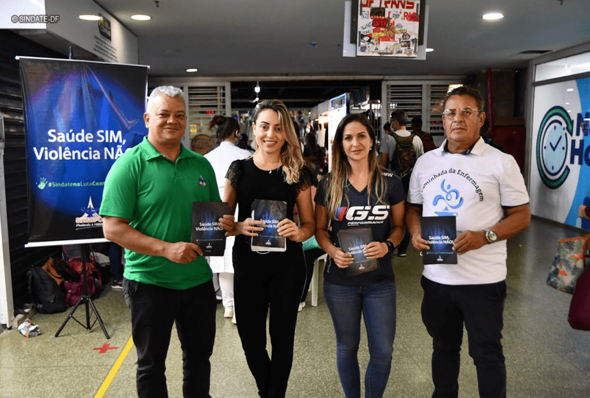 Dando continuidade a uma série de mobilizações contra a violência sofrida pelos Técnicos em Enfermagem nas unidades de saúde, na tarde da última terça-feira (21), o Sindicato dos Auxiliares e Técnicos em Enfermagem (Sindate-DF) promoveu um ato de conscientização para a população na Rodoviária do Plano Piloto.