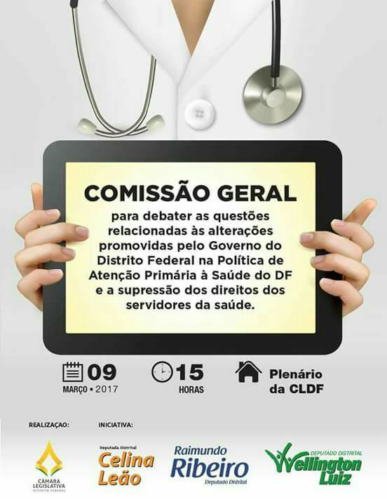 Os médicos devem se preparar para posicionamento durante a Comissão Geral, a ser realizada pela Câmara Legislativa do DF (CLDF), dia 9 de Março às 15h, a ser realizado por Celina Leão.