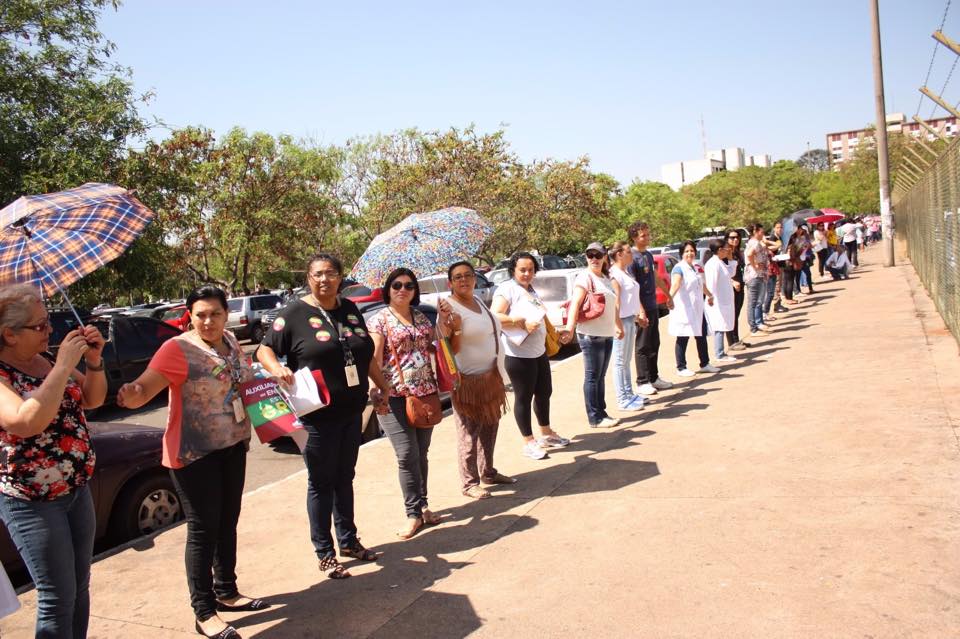 Além do abaixo assinado, outras ações estão acontecendo em protesto à implantação das OSs no DF. Um exemplo foi um abraço simbólico no HBDF (9/Out) realizado por servidores, concursados e usuários do SUS-DF. “Demos a munição ao procurador Bisol. Esperamos que ele promova algum tipo de intervenção para garantir que a Saúde do DF seja 100% SUS.”, afirmou a diretora Jurídica do Sindate, Elza Aparecida.