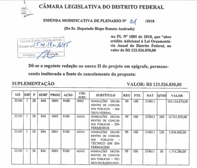 Desse montante, uma reserva de R$ 103 milhões é de livre nomeação por parte da SES-DF; R$ 14,7 milhões para 200 enfermeiros; R$ 3,9 milhões para 100 técnicos em enfermagem e R$ 1,7 milhões para 50 técnicos em radiologia.