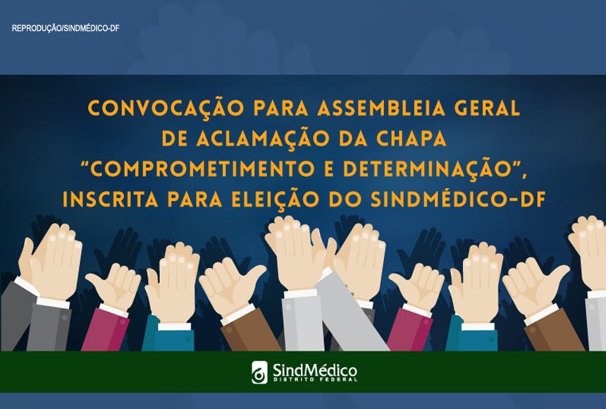 Convocação para Assembleia Geral de aclamação da chapa “Comprometimento e Determinação”, única inscrita para eleição da diretoria do SindMédico-DF.