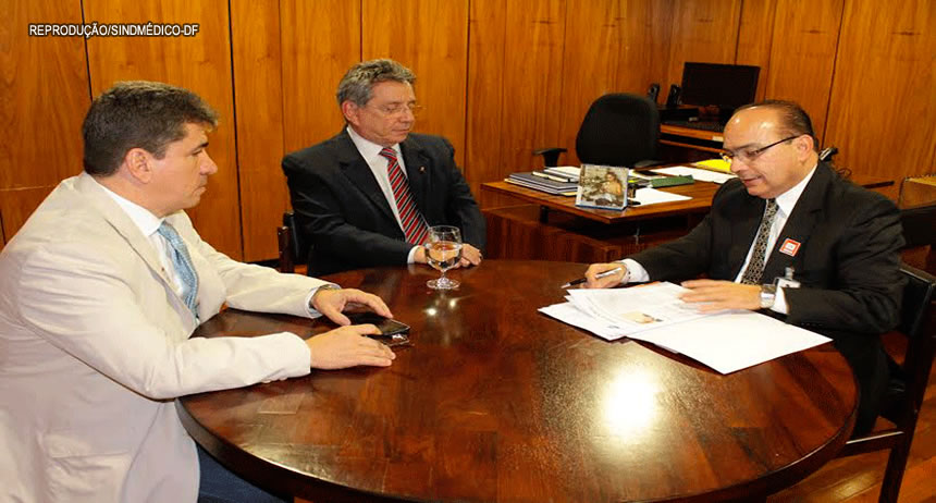 Nessa terça-feira (12), o presidente e o vice do SindMédico-DF, Gutemberg Fialho e Carlos Fernando, estiveram no Palácio do Planalto, onde se reuniram com Tadeu Filipelli, que ocupa o cargo de assessor especial do presidente da República em exercício, Michel Temer.