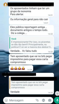 Uma segunda servidora aposentada, também não identificada por PDNews, encaminhou no grupo, mensagem sobre o contato do tal escritório de advocacia, porém, o caso chama ainda mais atenção pois a pessoa afirma ter recebido contato de escritório de advocacia, “de Goiás.”