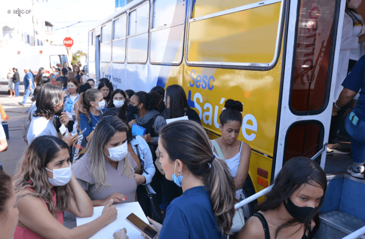 Os moradores da região vão receber a Unidade Móvel Saúde da Mulher, responsável por promover exames de Papanicolau (preventivo) em mulheres de 25 a 64 anos e exames de mamografia em mulheres de 50 a 69 anos para rastreamento de cânceres de colo uterino e mama, respectivamente. O serviço é seguro, acessível e aberto a toda população, o que contribui para prevenção e tratamento precoce. A unidade móvel totalmente revitalizada do projeto Sesc Mais Saúde também oferecerá para a população consultas médicas e mapeamento de saúde. Dentro do ônibus também são realizadas as triagens das mulheres, preparando a comunidade para receber os atendimentos ginecológicos especializados.