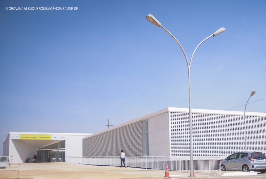 Quem passa em frente à nova Unidade Básica de Saúde 5 do Riacho Fundo II já consegue ter uma dimensão dos padrões de arquitetura modernos e conceituais que foram empregados na estrutura do prédio. Com 2.143 metros quadrados de área construída, a imponente unidade básica é a maior do Brasil, e ganhou destaque no ArchDaily – o site de arquitetura mais visitado do mundo.