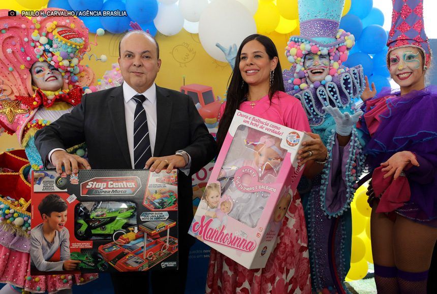 Parte do calendário oficial do Distrito Federal, a campanha Vem Brincar Comigo está em sua quinta edição. Idealizada pela primeira-dama do DF, Mayara Noronha Rocha, e coordenada pela Chefia-Executiva de Políticas Sociais, a iniciativa tem obtido cada vez mais apoio da sociedade civil e de todo o corpo de governo.