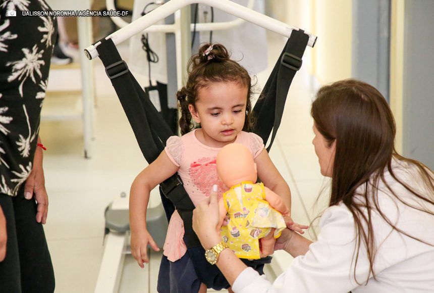 A pequena Maitê Garcia, 2 anos, foi uma das primeiras crianças a utilizar o novo suspensório. Ela nasceu com a síndrome de Dandy-Walker, condição que causa má formação no cérebro e prejudica o sistema motor. Em acompanhamento fisioterapêutico na unidade desde o nascimento, a evolução foi expressiva após o teste com a ferramenta.