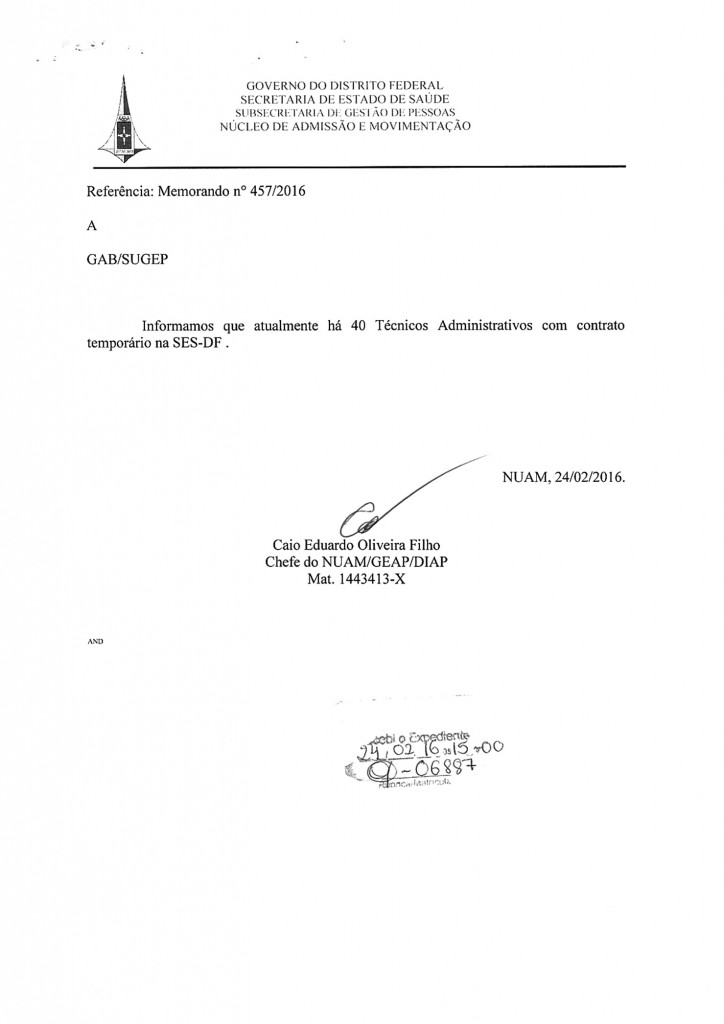 Ainda segundo a SES-DF “A pasta esclarece que, no momento, não há previsão para nomeação de novos técnicos administrativos.”.